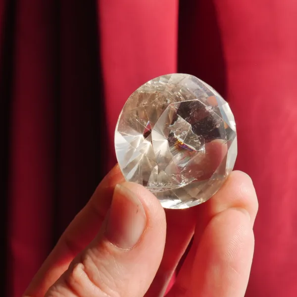 1.25″ Natural Light Smoky Quartz Diamond Brilliant Cut Crystal Carving 119 Carat