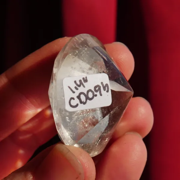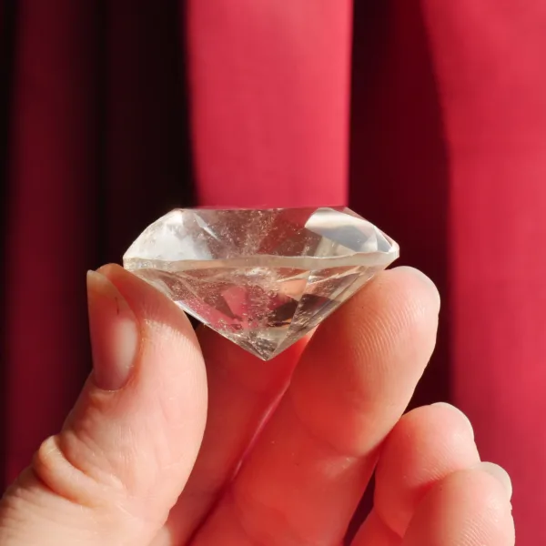 This Quartz diamond has been expertly faceted in Brazil. It features sparkling clarity, with very light smoky undertones, and flashes beautifully when it catches the light! A larger gemstone, this piece is best suited for display, or in custom jewelry pieces where an extra large stone is desired. This crystal diamond measures 1.4″ in diameter. Total weight is 117 Carats. Made from Clear Quartz, mined and polished in Brazil.