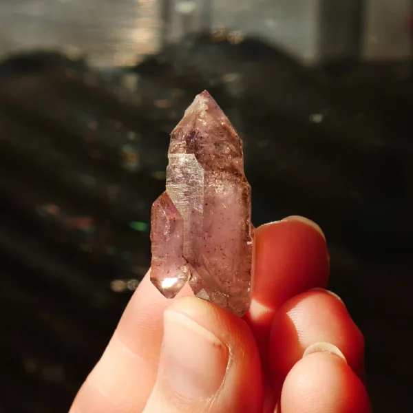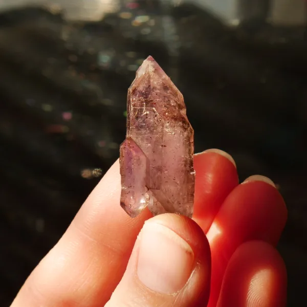 This beautiful Amethyst features a blend of smoky and purple coloring, double terminations, and a smaller companion nestled on one side. Elestial Amethyst – also known as “skeletal” or “window” amethyst, features unusual and irregular growth habits, including tightly grouped and/or overlapping clusters, extrusions, inclusions and curious etchings. Bands of smoky color are often seen as well. This Miniature-size specimen weighs 0.39 oz and measures 1.4″ at its largest dimension. From Chiredzi, Zimbabwe