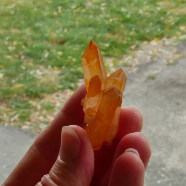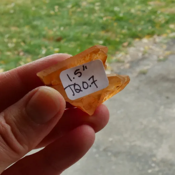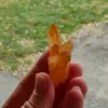 Tangerine Quartz, also known as Hematite or Ferruginous quartz, is quartz that has been coated or included with a layer of hematite, or iron oxide. The bright orange color seen in these pieces is highly sought after among collectors. Our tangerine quartz pieces are carefully selected from Brazil, and will be a bright addition to any collection. Please see the pictures – you will see the exact piece shown here.