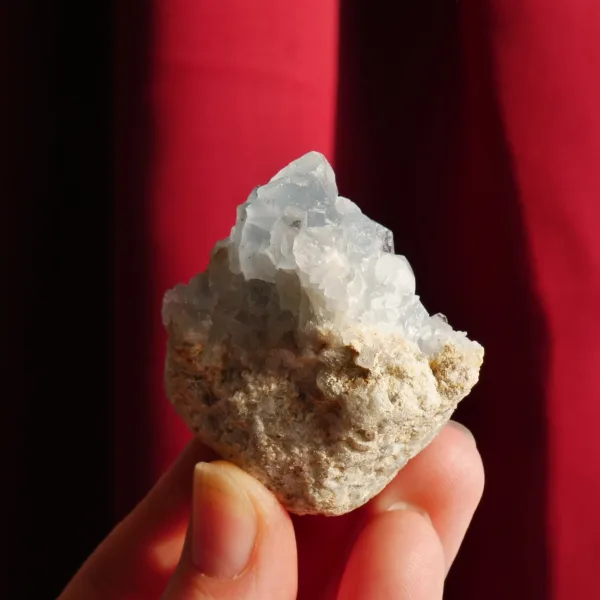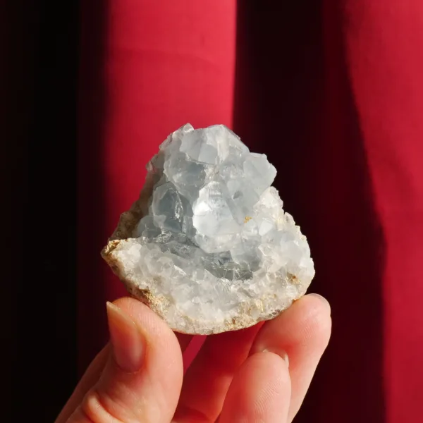 Celestite resonates with the throat and third eye/crown chakras. It is believed to encourage clarity of expression, inspiration, and clairvoyance. It is an angelic crystal with a strong vibration, and is said to help discern truth.