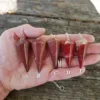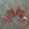 These cheerful red Jasper pendulums feature rich red color, with some inclusions of hematite or quartz. Crystal pendulums have traditionally been used as a tool in crystal healing and various metaphysical purposes. Those unfamiliar with pendulums as a tool have been known to enjoy them for decorative purposes, such as suncatchers or talismans.