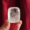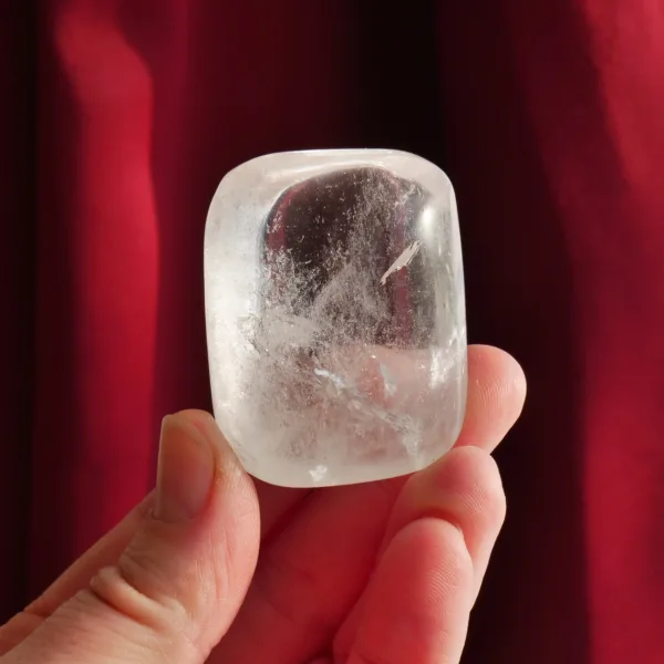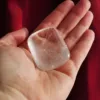 This sparkling quartz palm stone has been carved into a unique square palm stone shape, also known as a “soap”. Intended for use as a palm stone, its low profile makes it a lovely carry stone as well. With stunning clarity and beautiful rainbows, as well as a slight magnifying effect due to the domed surface, this piece is sure to enhance any collection.