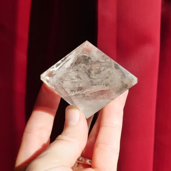 The Octahedron shape represents the air element. It has 8 faces, 6 points, and 12 edges. It symbolizes a bridge between the earthly and celestial realms, or the physical and metaphysical. It resonates with knowledge, mental clarity, intuition and obtaining wisdom – in short, the all-knowing connection to higher realms.