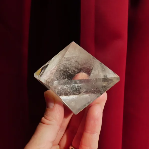 The Octahedron shape represents the air element. It has 8 faces, 6 points, and 12 edges. It symbolizes a bridge between the earthly and celestial realms, or the physical and metaphysical. It resonates with knowledge, mental clarity, intuition and obtaining wisdom – in short, the all-knowing connection to higher realms.
