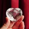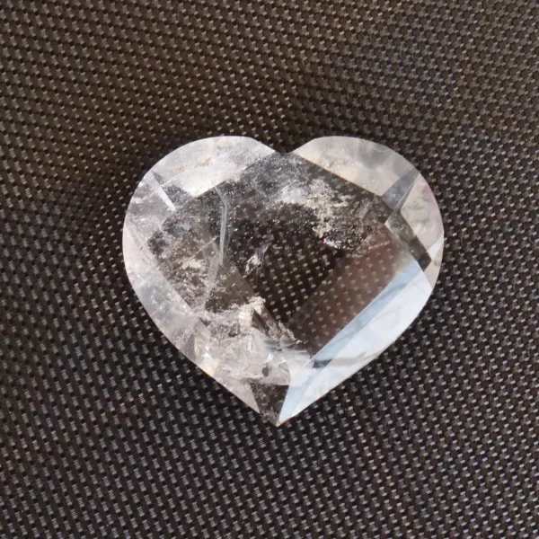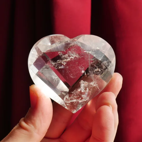This flashy heart carving features flawless facets and water-like clarity. In the sunlight, this piece explodes with sparkling light! Whether an addition to your own collection or a special gift for someone else, this piece will enhance any space it is placed in. Measuring 2.25″ at the widest dimension, and weighs 3.2 oz.