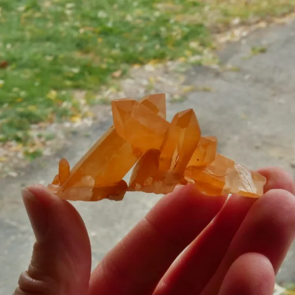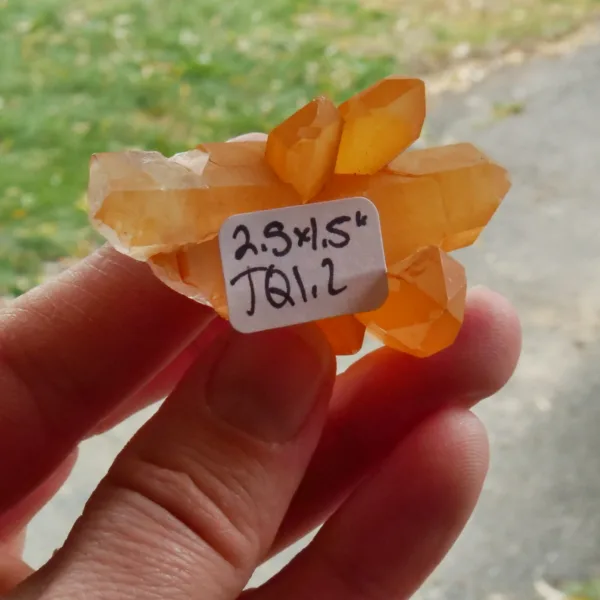 Tangerine Quartz, also known as Hematite or Ferruginous quartz, is quartz that has been coated or included with a layer of hematite, or iron oxide. The bright orange color seen in these pieces is highly sought after among collectors. Our tangerine quartz pieces are carefully selected from Brazil, and will be a bright addition to any collection. Please see the pictures – you will see the exact piece shown here.