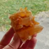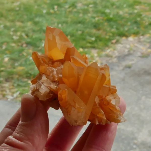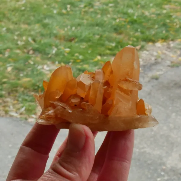 Tangerine Quartz, also known as Hematite or Ferruginous quartz, is quartz that has been coated or included with a layer of hematite, or iron oxide. The bright orange color seen in these pieces is highly sought after among collectors. Our tangerine quartz pieces are carefully selected from Brazil, and will be a bright addition to any collection. Please see the pictures – you will see the exact piece shown here.