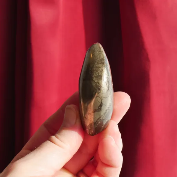 As rare as the ancient kings, Pharoah Stone is aptly named. A naturally occurring mix of sparkling pyrite and black basalt, this is a powerful combination stone which is deceptively heavy for its size. The stark contrast of the sparkling gold pyrite against the void of black basalt enhances and complements the differences in these two materials. Truly a rare find – this material has been found in limited quantities in only one location – the Iron Duke Mine in Zimbabwe. This exceptional stone is truly hard to find and I am honored to be able to offer it in the shop!