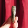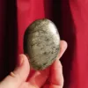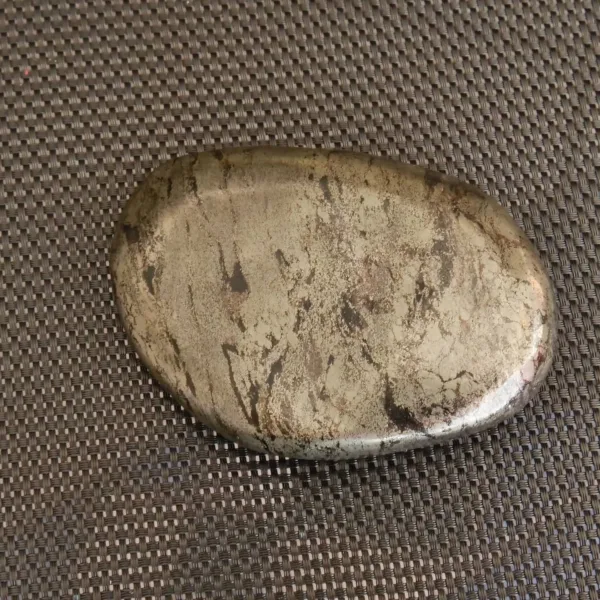 Pyrite resonates with the solar plexus and is said to be a stone of strength and courage. It activates one’s determination, strengthens resolve, and lends the courage needed to overcome difficult obstacles. It can be a great ally in achieving life goals. Basalt is considered a transformative, protective, and cleansing stone. It symbolizes rebirth and the power of the earth, and is extremely grounding. It primarily resonates with the root chakra, but can connect with all chakras and used to help cleanse the aura. Together these two minerals create a powerful stone that encourages growth and rebirth, while safely grounded and protected from negative energies. A super stone!