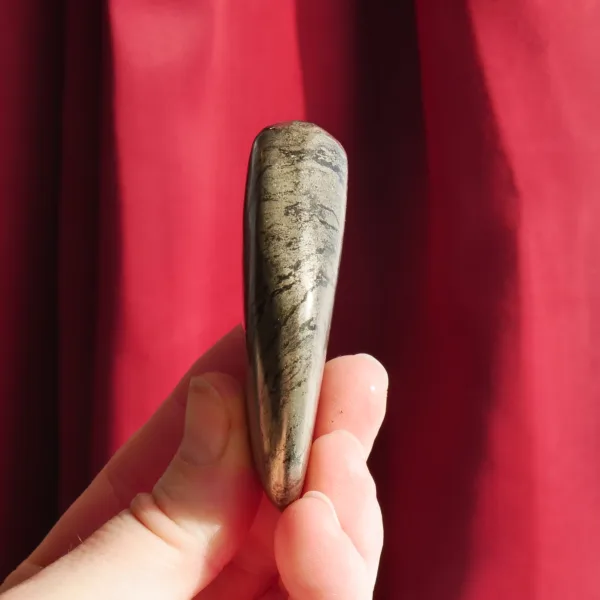 As rare as the ancient kings, Pharoah Stone is aptly named. A naturally occurring mix of sparkling pyrite and black basalt, this is a powerful combination stone which is deceptively heavy for its size. The stark contrast of the sparkling gold pyrite against the void of black basalt enhances and complements the differences in these two materials. Truly a rare find – this material has been found in limited quantities in only one location – the Iron Duke Mine in Zimbabwe. This exceptional stone is truly hard to find and I am honored to be able to offer it in the shop!