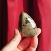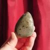 Pyrite resonates with the solar plexus and is said to be a stone of strength and courage. It activates one’s determination, strengthens resolve, and lends the courage needed to overcome difficult obstacles. It can be a great ally in achieving life goals. Basalt is considered a transformative, protective, and cleansing stone. It symbolizes rebirth and the power of the earth, and is extremely grounding. It primarily resonates with the root chakra, but can connect with all chakras and used to help cleanse the aura. Together these two minerals create a powerful stone that encourages growth and rebirth, while safely grounded and protected from negative energies. A super stone!