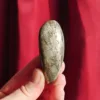Pyrite resonates with the solar plexus and is said to be a stone of strength and courage. It activates one’s determination, strengthens resolve, and lends the courage needed to overcome difficult obstacles. It can be a great ally in achieving life goals. Basalt is considered a transformative, protective, and cleansing stone. It symbolizes rebirth and the power of the earth, and is extremely grounding. It primarily resonates with the root chakra, but can connect with all chakras and used to help cleanse the aura. Together these two minerals create a powerful stone that encourages growth and rebirth, while safely grounded and protected from negative energies. A super stone!