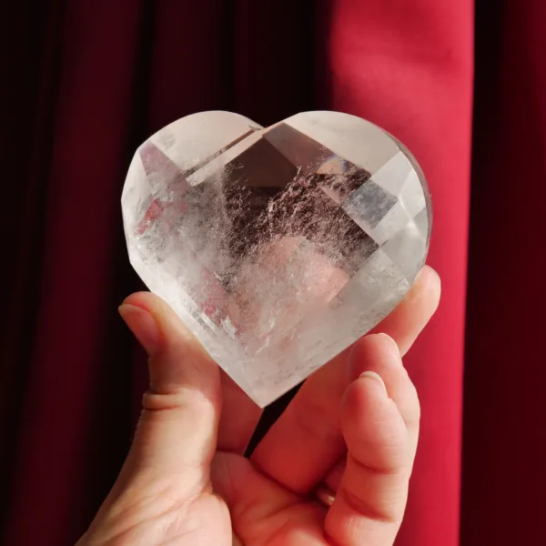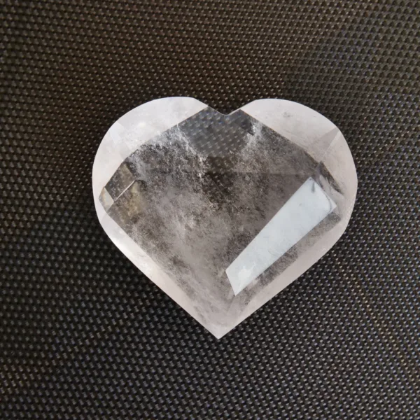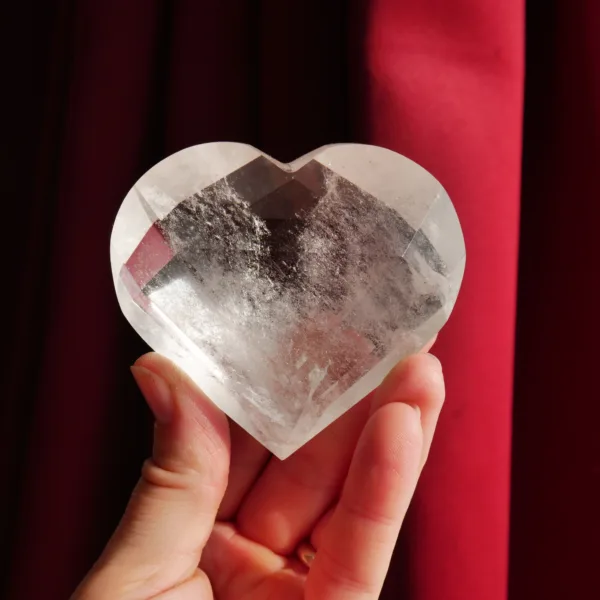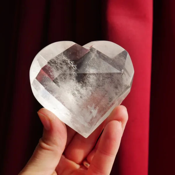 This flashy heart carving features flawless facets and good clarity. In the sunlight, this piece explodes with sparkling light! Whether an addition to your own collection or a special gift for someone else, this piece will enhance any space it is placed in. Measuring 2.9″ at the widest dimension, and weighs 7.7 oz.