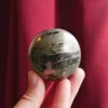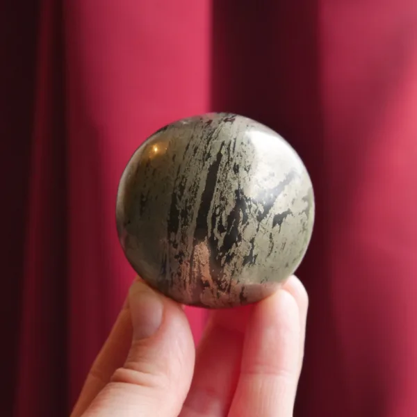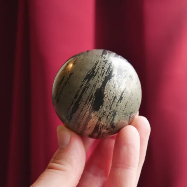 I am so excited to offer these elusive crystals…Pharaoh Stone is a naturally occurring mix of Basalt and Pyrite, and the effect ✨ It’s like a river of gold! ✨ Shimmering and glittering in the light, offset by the dark Basalt and formed in lava….a more potent mix of minerals you’ll not see again! This sphere is 2″ is diameter and weighs 10.3 oz. From the Iron Duke mine in Zimbabwe.