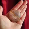 This palmstone/freeform weighs 1.6 oz and measures 2″ in diameter. From Brazil.