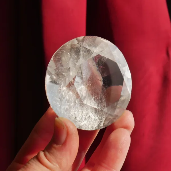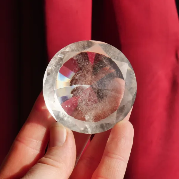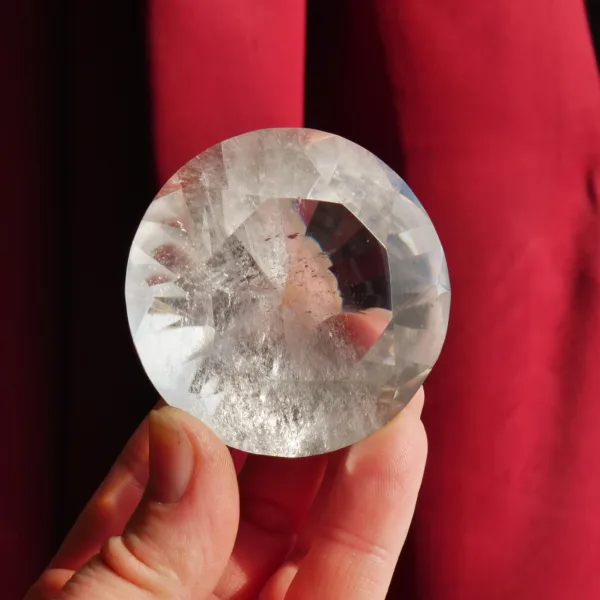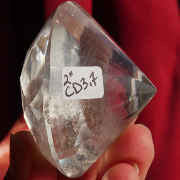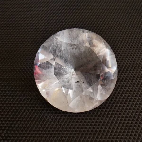 This Quartz diamond has been expertly faceted in Brazil. It features sparkling clarity, and flashes beautifully when it catches the light! A larger gemstone, this piece is best suited for display. It will be a dazzling addition and a centerpiece to any collection! This crystal diamond measures 2″ in diameter. Total weight is 531 Carats. Made from Clear Quartz, mined and polished in Brazil.
