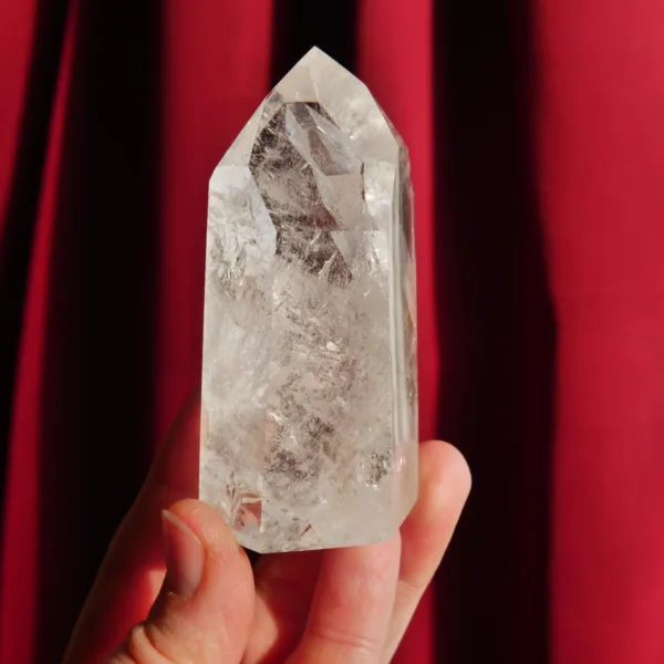 Clear quartz is considered the master healer and an amplifier of energy. It resonates with the crown and third eye chakras. It is suited for many display situations, including outdoors and in direct sunlight.