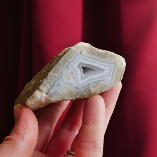Blue Lace Agate has a soft soothing energy, and resonates primarily with the throat chakra. Said to aid in clear and kind communication, it is a stone of which helps express emotions without getting upset.