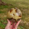Septarian crystal is said to resonate with the root chakra. An especially grounding stone, this crystal is said to enhance the carrier’s life force, assist in healing physical and spiritual ailments, and increase self-confidence.
