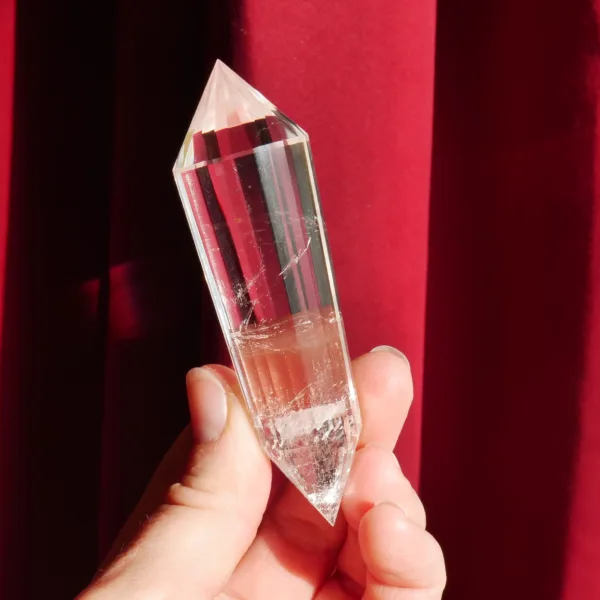 Marcel Vogel developed the powerful Vogel shape in the 1980s: it is tapered and double-terminated, with facets all around the edge to the tips. The shape was designed and intended to gather and amplify energy with the female (large) end receiving energy, and the male end (smaller) amplifying and transmitting energy. They were first used as a tool in various crystal healing modalities. Our Vogels are created from Clear Quartz mined in Brazil and faceted by talented Brazilian craftsmen – but they are not cut by Vogel trained cutters and often have slightly different angles of the points. While the copy of a Vogel may not be held to the same exacting standards of an original, they can still be used as healing tools and rival the original design in beauty. The needs of the individual must be considered when choosing a Vogel for healing, or other use. For more information on Vogels, please refer to our blog post HERE.