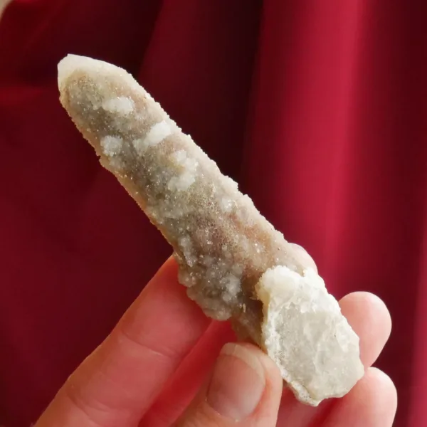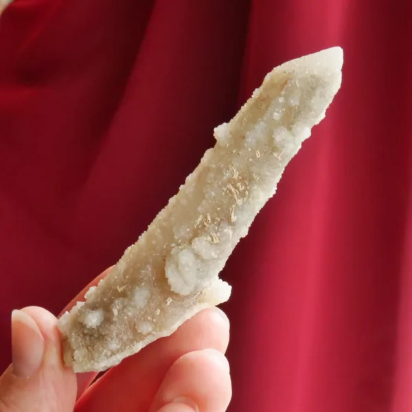 This sparkling poimt is a variation of the very popular Spirit Quartz. With elongated points covered with a finer crystallization (drusy) and interesting knobby growths, this style of growth has affectionately become known as “witches fingers” or “fairy quartz” and is harder to find than the typical spirit quartz. The beautiful golden tones in this piece come from Limonite deposits which grew alongside the crystals.