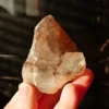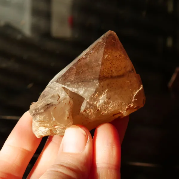 This point features a lovely smoky-amethyst coloring, dense flecks of hematite inclusions, and when held to the light some rainbows are visible. This small cabinet size specimen measures 3″ at its largest dimension, and weighs 4.9 oz. From the Brandberg Massif in Namibia, Africa. Please see photos for full details – you will receive the exact specimen shown here.