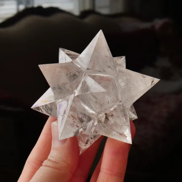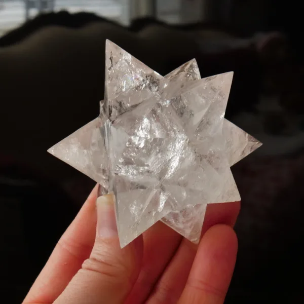 3″ Clear Quartz Double Merkabah 6.6 Oz | Stellated Dodecahedron | 12-Pointed Crystal Star | Asteroid
