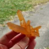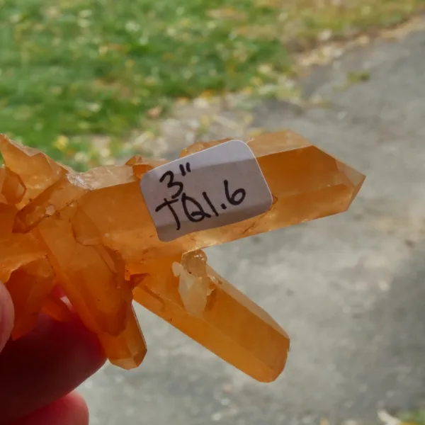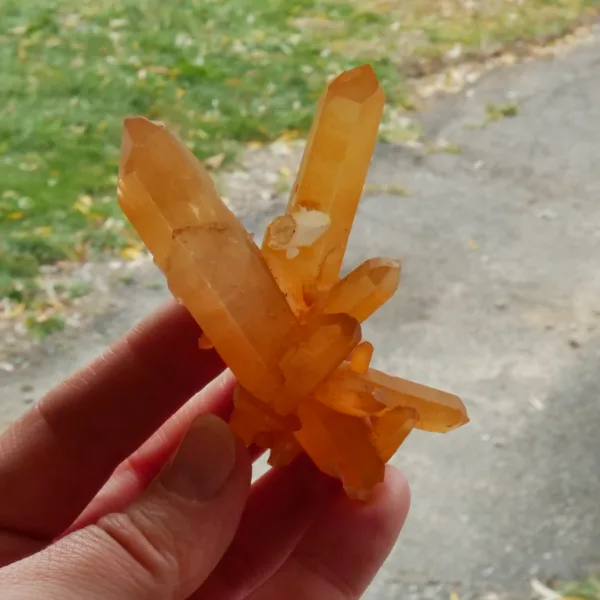 Tangerine Quartz, also known as Hematite or Ferruginous quartz, is quartz that has been coated or included with a layer of hematite, or iron oxide. The bright orange color seen in these pieces is highly sought after among collectors. Our tangerine quartz pieces are carefully selected from Brazil, and will be a bright addition to any collection. Please see the pictures – you will see the exact piece shown here.