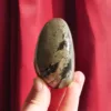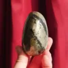 Pyrite resonates with the solar plexus and is said to be a stone of strength and courage. It activates one’s determination, strengthens resolve, and lends the courage needed to overcome difficult obstacles. It can be a great ally in achieving life goals. Basalt is considered a transformative, protective, and cleansing stone. It symbolizes rebirth and the power of the earth, and is extremely grounding. It primarily resonates with the root chakra, but can connect with all chakras and used to help cleanse the aura. Together these two minerals create a powerful stone that encourages growth and rebirth, while safely grounded and protected from negative energies. A super stone!