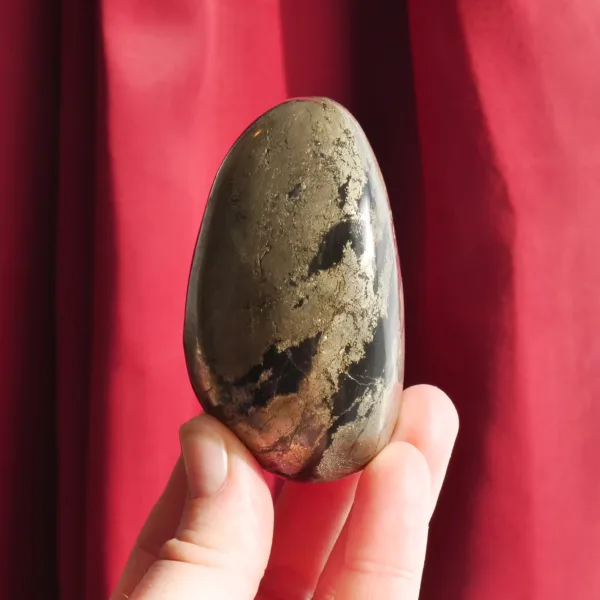 As rare as the ancient kings, Pharoah Stone is aptly named. A naturally occurring mix of sparkling pyrite and black basalt, this is a powerful combination stone which is deceptively heavy for its size. The stark contrast of the sparkling gold pyrite against the void of black basalt enhances and complements the differences in these two materials. Truly a rare find – this material has been found in limited quantities in only one location – the Iron Duke Mine in Zimbabwe. This exceptional stone is truly hard to find and I am honored to be able to offer it in the shop!