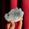 Celestite is a beautiful material, highly sought after by collectors: it is prized for its color and sparkle. The name is from the Greek word for Heaven, and it contains high amounts of Strontium Sulfate, which is one of the main ingredients in red fireworks! This beautiful sparkly raw celestite chunk features a lovely blue color and lots of shimmer in the light. It has large and well-defined terminations, with good clarity and some rainbows. This piece is extremely sparkly when held to the light! This piece measures 3″ at its largest dimension and weighs 10.6 ounces. From Sakoany, Madagascar.