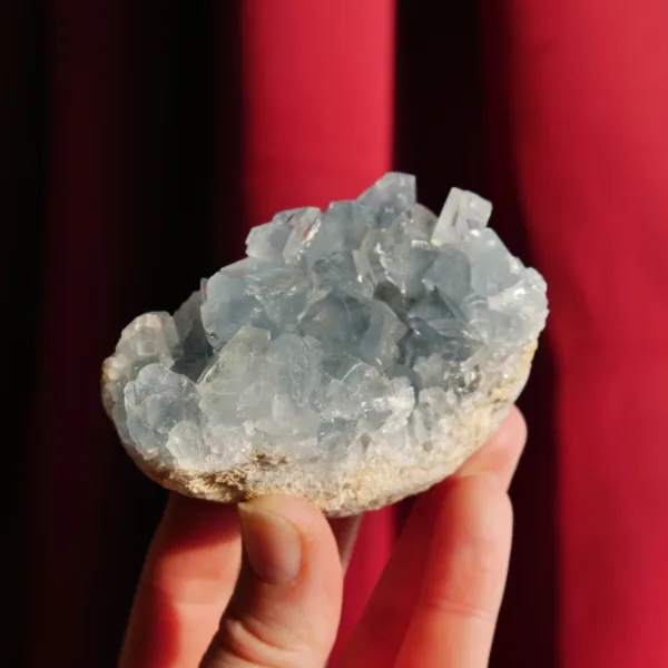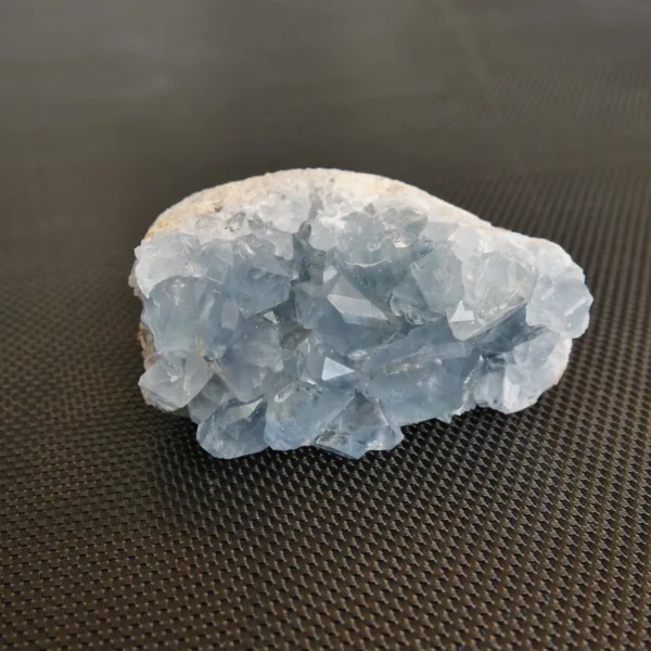 Celestite resonates with the throat and third eye/crown chakras. It is believed to encourage clarity of expression, inspiration, and clairvoyance. It is an angelic crystal with a strong vibration, and is said to help discern truth.