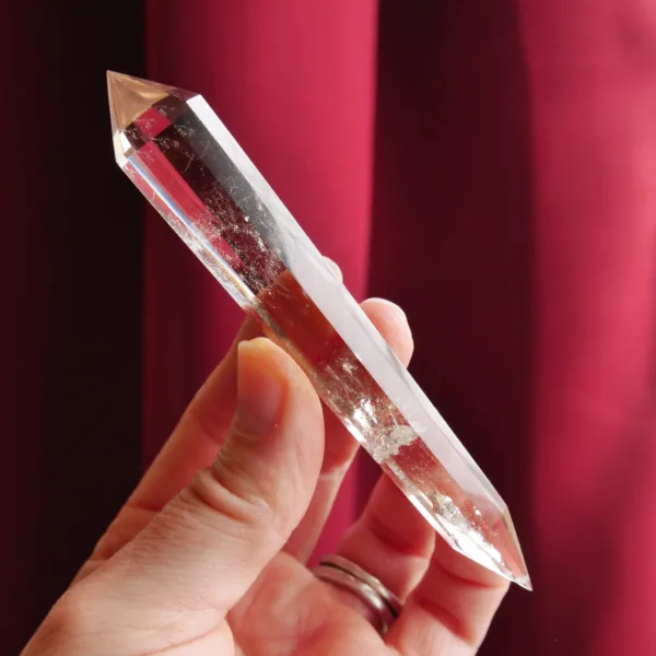 Marcel Vogel developed the powerful Vogel shape in the 1980s: it is tapered and double-terminated, with facets all around the edge to the tips. The shape was designed and intended to gather and amplify energy with the female (large) end receiving energy, and the male end (smaller) amplifying and transmitting energy. They were first used as a tool in various crystal healing modalities. Our Vogels are created from Clear Quartz mined in Brazil and faceted by talented Brazilian craftsmen – but they are not cut by Vogel trained cutters and often have slightly different angles of the points. While the copy of a Vogel may not be held to the same exacting standards of an original, they can still be used as healing tools and rival the original design in beauty. The needs of the individual must be considered when choosing a Vogel for healing, or other use. For more information on Vogels, please refer to our blog post HERE.