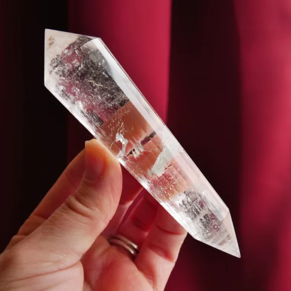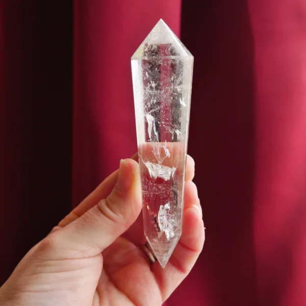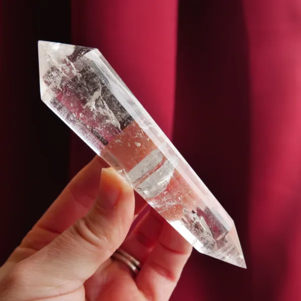 Marcel Vogel developed the powerful Vogel shape in the 1980s: it is tapered and double-terminated, with facets all around the edge to the tips. The shape was designed and intended to gather and amplify energy with the female (large) end receiving energy, and the male end (smaller) amplifying and transmitting energy. They were first used as a tool in various crystal healing modalities. Our Vogels are created from Clear Quartz mined in Brazil and faceted by talented Brazilian craftsmen – but they are not cut by Vogel trained cutters and often have slightly different angles of the points. While the copy of a Vogel may not be held to the same exacting standards of an original, they can still be used as healing tools and rival the original design in beauty. The needs of the individual must be considered when choosing a Vogel for healing, or other use. For more information on Vogels, please refer to our blog post HERE.