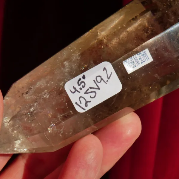 This beautiful Smoky Quartz Vogel features lovely natural coloring, and 12 flashy facets around the entire piece. Presenting some sparkling rainbows and beautiful clarity, this piece glows when held to the light. This piece has been cut with 12 facets around the outside, creating a Vogel perfect for general use. Weight is 9.2 oz and length is 4.5″. Made from Natural Smoky quartz, mined and polished in Brazil. The transmitting end (smaller) is 60° and the internal angle of the larger receiving end is 43°.