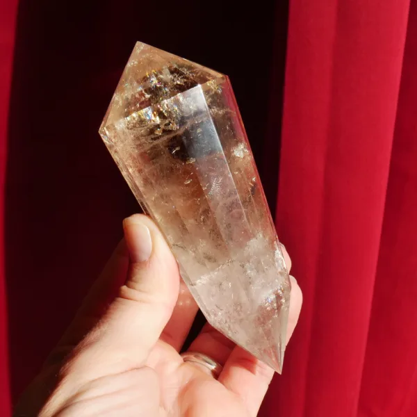 Marcel Vogel developed the powerful Vogel shape in the 1980s: it is tapered and double-terminated, with facets all around the edge to the tips. The shape was designed and intended to gather and amplify energy with the female (large) end receiving energy, and the male end (smaller) amplifying and transmitting energy. They were first used as a tool in various crystal healing modalities. Our Vogels are created from Clear Quartz mined in Brazil and faceted by talented Brazilian craftsmen – but they are not cut by Vogel trained cutters and often have slightly different angles of the points. While the copy of a Vogel may not be held to the same exacting standards of an original, they can still be used as healing tools and rival the original design in beauty. The needs of the individual must be considered when choosing a Vogel for healing, or other use. For more information on Vogels, please refer to our blog post HERE.