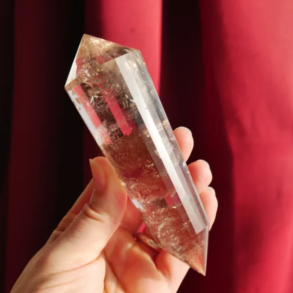 Marcel Vogel developed the powerful Vogel shape in the 1980s: it is tapered and double-terminated, with facets all around the edge to the tips. The shape was designed and intended to gather and amplify energy with the female (large) end receiving energy, and the male end (smaller) amplifying and transmitting energy. They were first used as a tool in various crystal healing modalities. Our Vogels are created from Clear Quartz mined in Brazil and faceted by talented Brazilian craftsmen – but they are not cut by Vogel trained cutters and often have slightly different angles of the points. While the copy of a Vogel may not be held to the same exacting standards of an original, they can still be used as healing tools and rival the original design in beauty. The needs of the individual must be considered when choosing a Vogel for healing, or other use. For more information on Vogels, please refer to our blog post HERE.