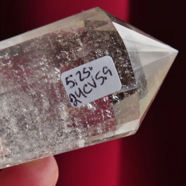 This beautiful high quality Clear Quartz Vogel features sparkling clarity, with some flashy rainbows within. This piece has been cut with 24 facets around the outside, which not only increases the brilliance of the Vogel, but is said to create increased energy production and a Vogel suitable for use in transformation efforts. This Vogel weighs 5.9 oz and measures 10″ long. Made from Clear Quartz, mined and polished in Brazil. The transmitting end (smaller) is 52° and the internal angle of the larger receiving end is 50°