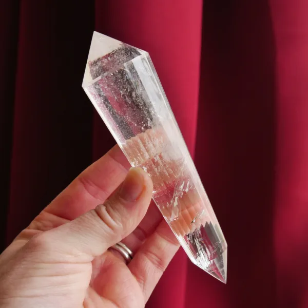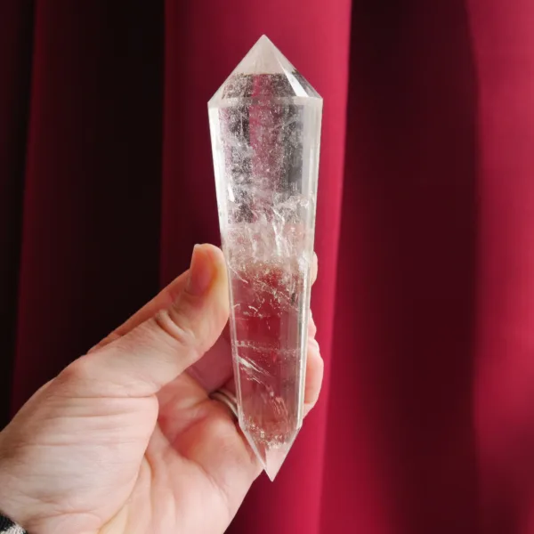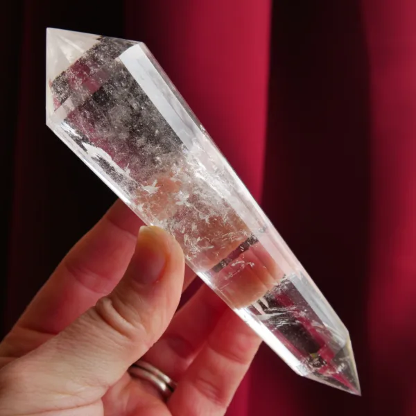 Marcel Vogel developed the powerful Vogel shape in the 1980s: it is tapered and double-terminated, with facets all around the edge to the tips. The shape was designed and intended to gather and amplify energy with the female (large) end receiving energy, and the male end (smaller) amplifying and transmitting energy. They were first used as a tool in various crystal healing modalities. Our Vogels are created from Clear Quartz mined in Brazil and faceted by talented Brazilian craftsmen – but they are not cut by Vogel trained cutters and often have slightly different angles of the points. While the copy of a Vogel may not be held to the same exacting standards of an original, they can still be used as healing tools and rival the original design in beauty. The needs of the individual must be considered when choosing a Vogel for healing, or other use. For more information on Vogels, please refer to our blog post HERE.