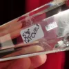 This beautiful Clear Quartz Vogel features sparkling, flawless clarity, and a few well-placed flashy rainbows. This piece has been cut with 12 facets around the outside, which creates a Vogel ideal for use in general energy work. Additionally, this wand has a unique “flat” shape, with two of the opposing facets creating large faces. For those who are not familiar with the term, a singing crystal is one in which the molecules align perfectly, and when gently tapped on one end with a fingernail, will emit a soft chime. This piece sings beautifully with an angelic sound. This Vogel weighs 10.3 oz and measures 5″ long. Made from Clear quartz, mined and polished in Brazil. The transmitting end (smaller) is 68° and the internal angle of the larger receiving end is 47°.