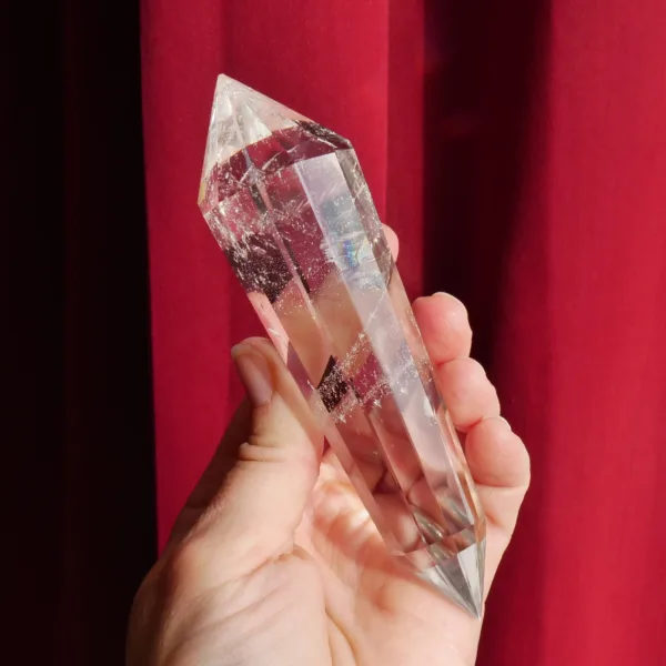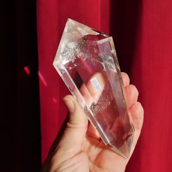 Marcel Vogel developed the powerful Vogel shape in the 1980s: it is tapered and double-terminated, with facets all around the edge to the tips. The shape was designed and intended to gather and amplify energy with the female (large) end receiving energy, and the male end (smaller) amplifying and transmitting energy. They were first used as a tool in various crystal healing modalities. Our Vogels are created from Clear Quartz mined in Brazil and faceted by talented Brazilian craftsmen – but they are not cut by Vogel trained cutters and often have slightly different angles of the points. While the copy of a Vogel may not be held to the same exacting standards of an original, they can still be used as healing tools and rival the original design in beauty. The needs of the individual must be considered when choosing a Vogel for healing, or other use. For more information on Vogels, please refer to our blog post HERE.