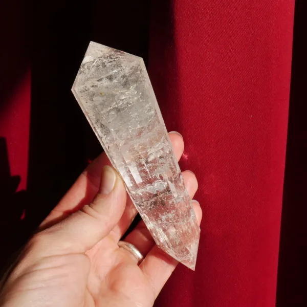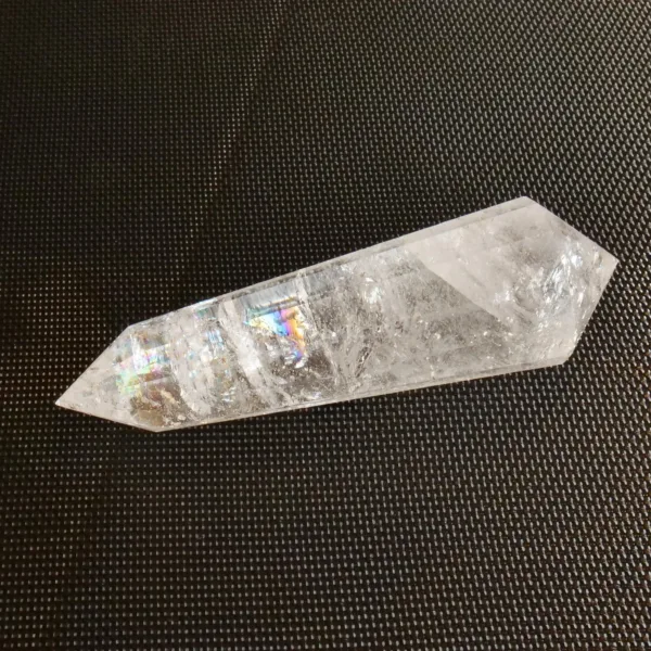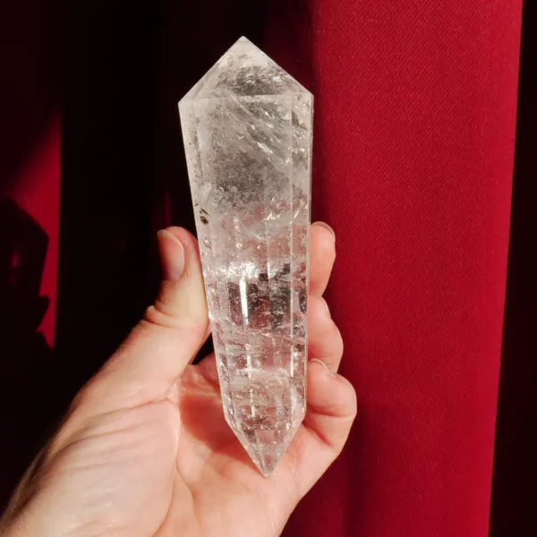 Marcel Vogel developed the powerful Vogel shape in the 1980s: it is tapered and double-terminated, with facets all around the edge to the tips. The shape was designed and intended to gather and amplify energy with the female (large) end receiving energy, and the male end (smaller) amplifying and transmitting energy. They were first used as a tool in various crystal healing modalities. Our Vogels are created from Clear Quartz mined in Brazil and faceted by talented Brazilian craftsmen – but they are not cut by Vogel trained cutters and often have slightly different angles of the points. While the copy of a Vogel may not be held to the same exacting standards of an original, they can still be used as healing tools and rival the original design in beauty. The needs of the individual must be considered when choosing a Vogel for healing, or other use. For more information on Vogels, please refer to our blog post HERE.