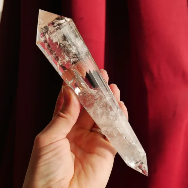 Marcel Vogel developed the powerful Vogel shape in the 1980s: it is tapered and double-terminated, with facets all around the edge to the tips. The shape was designed and intended to gather and amplify energy with the female (large) end receiving energy, and the male end (smaller) amplifying and transmitting energy. They were first used as a tool in various crystal healing modalities. Our Vogels are created from Clear Quartz mined in Brazil and faceted by talented Brazilian craftsmen – but they are not cut by Vogel trained cutters and often have slightly different angles of the points. While the copy of a Vogel may not be held to the same exacting standards of an original, they can still be used as healing tools and rival the original design in beauty. The needs of the individual must be considered when choosing a Vogel for healing, or other use. For more information on Vogels, please refer to our blog post HERE.