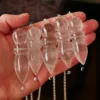 These beautiful large-size Egyptian pendulums are created from stunning Brazilian Clear Quartz and a silver-tone chain. They feature excellent clarity with some rainbows within. These are handmade and each piece is slightly different.