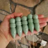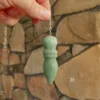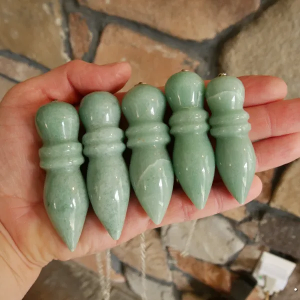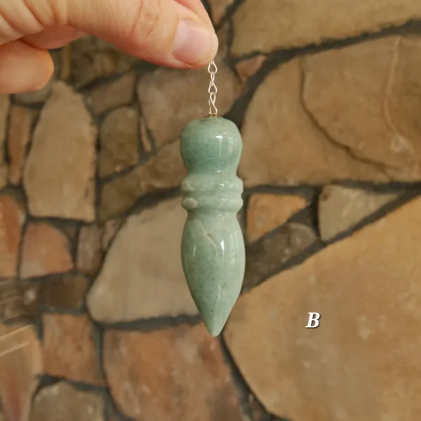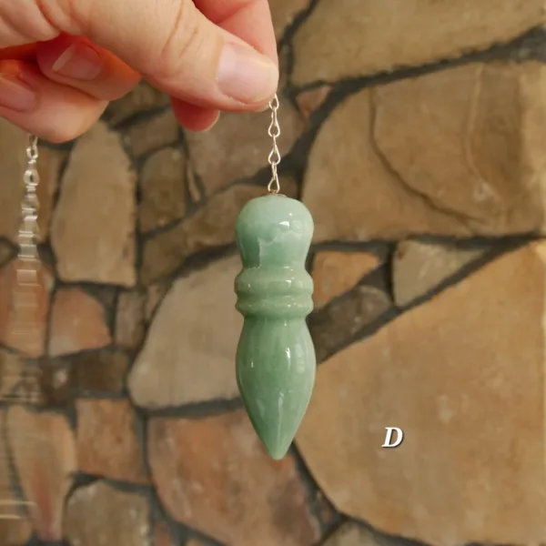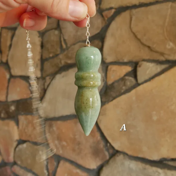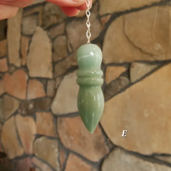 These pendulums are made from Green Aventurine mined and polished in Brazil. Each pendulum crystal measures 2.25-2.5″ long with an 8″ silver tone chain. They feature lovely soft green color with light sparkle.