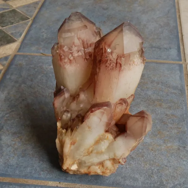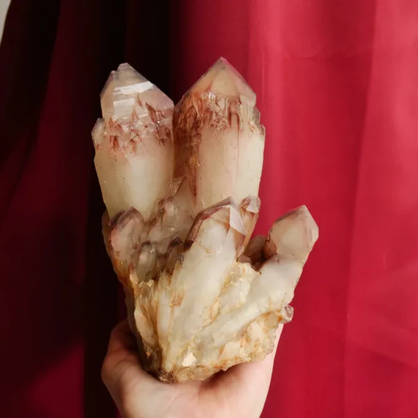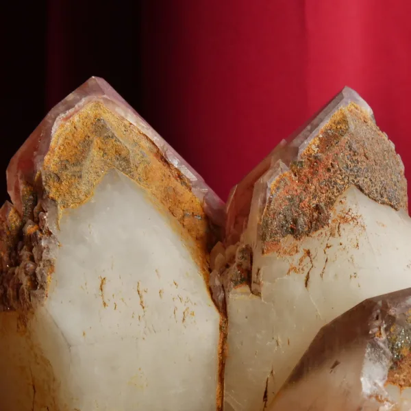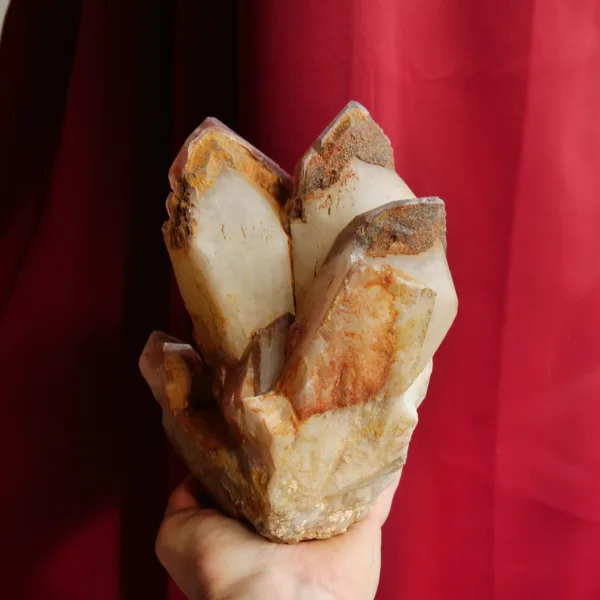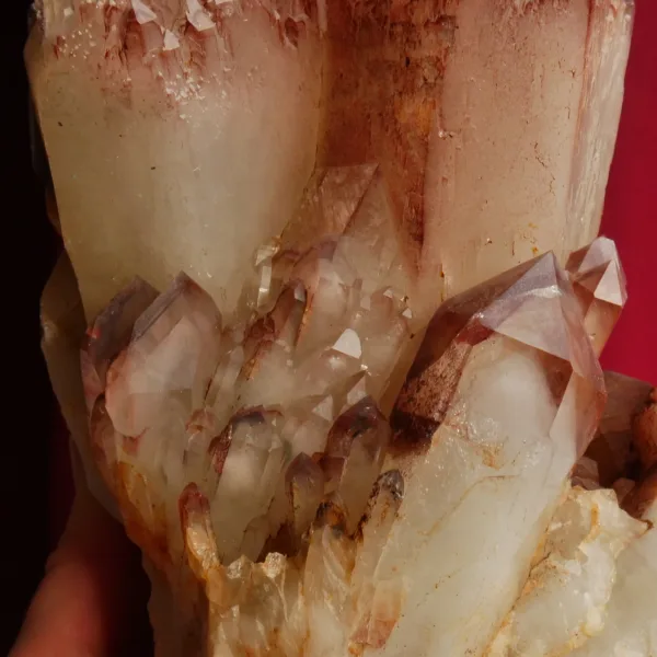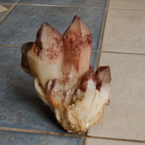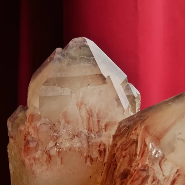 This exceptional cluster of Hematite quartz offers a lovely display of cascading pineapple-like points, as well as layers of red and smoky phantoms within the tips. Turn the cluster around, and you get a firsthand glimpse of how this piece formed – at the center is white quartz, with clearly visible layers of crystalline hematite and quartz forming the outer layer. Standing 7.25″, this piece is a museum-sized specimen and will be a standout in any collection – from across the room it demands attention! Total weight is 5 Lbs 13.5 oz. Mined from Karoi, Zimbabwe